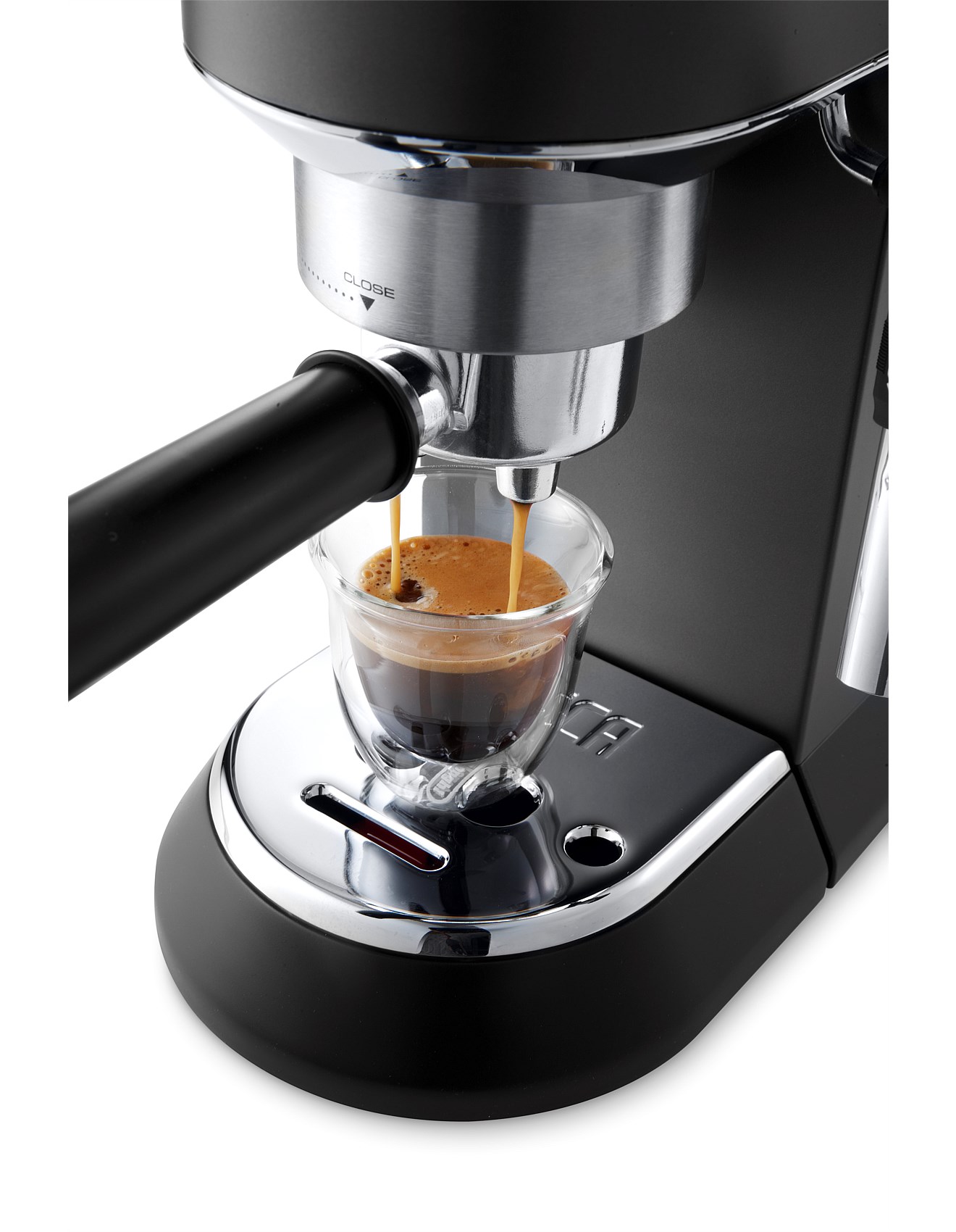 Delonghi dedica manual coffee machine black. 4.5 out of 5 star rating. This machine consistently delivers a frothy, rich espresso, and for people who prefer to add some milk to their coffee concoctions, the dedica. Available in various colors, the machine has a sleek design and weighs around 9.3 pounds. Given its compact footprint, the dedica has had to step away from the conventional styling of a pump machine and take on its own identity.