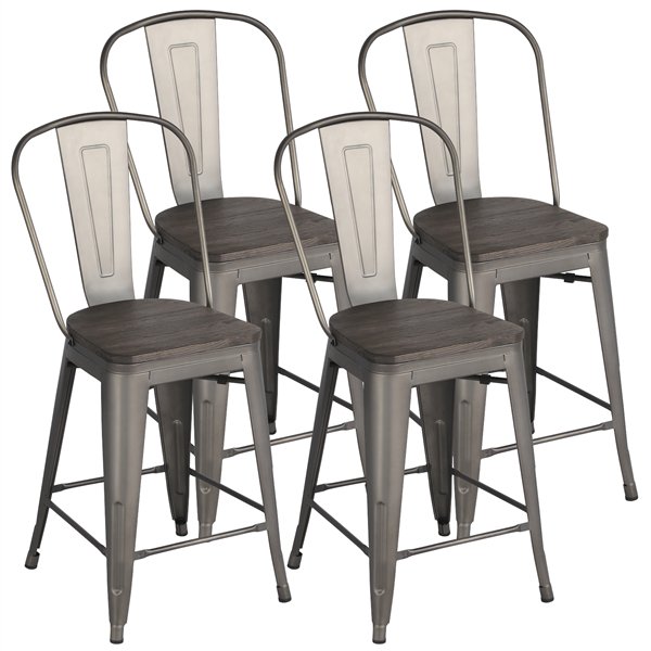 Metal Dining Room Chairs With Wood Seat Counter Bar : mecor Metal Bar stools Set of 4 with Removable Backrest ... - Expertly welded into a graphic linear pattern.